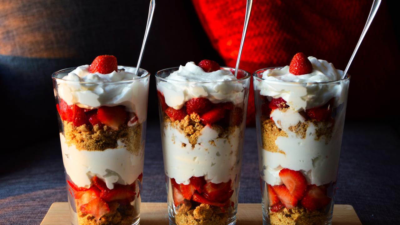 Wallpaper Dessert with cereal, strawberries and yoghurt