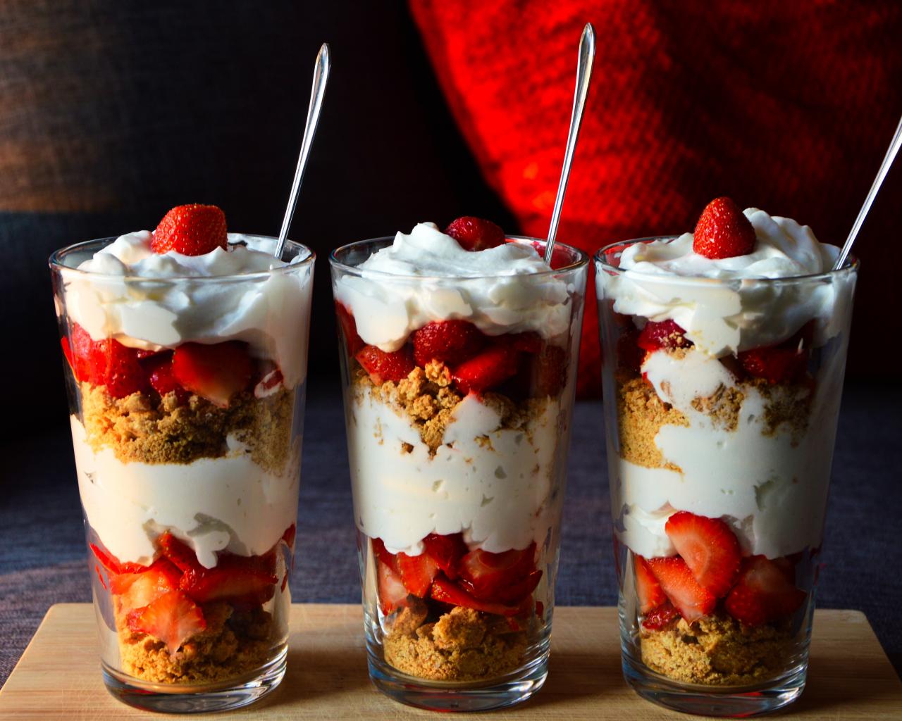 Wallpaper Dessert with cereal, strawberries and yoghurt
