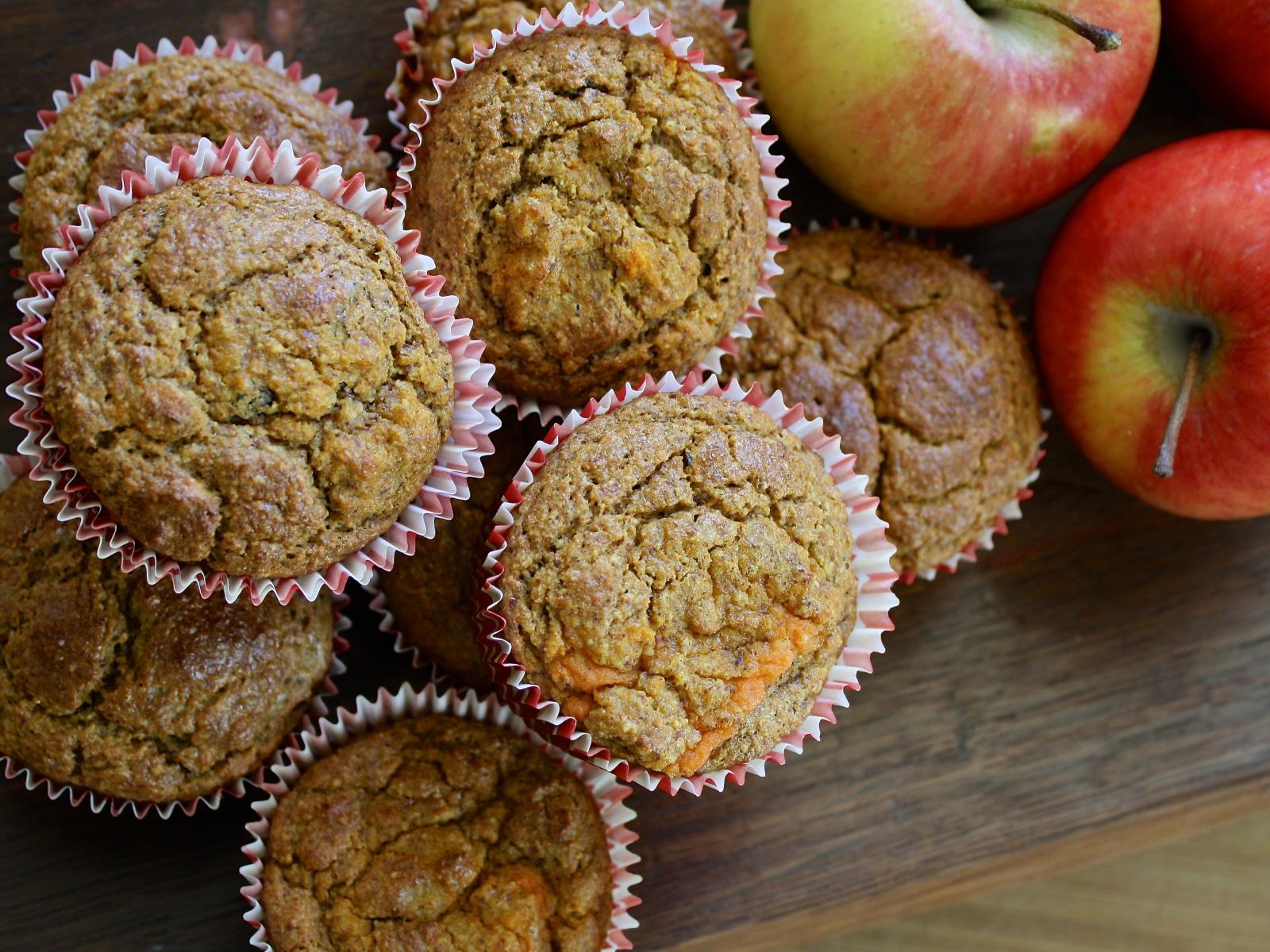Wallpaper Fresh muffins on the table with apples