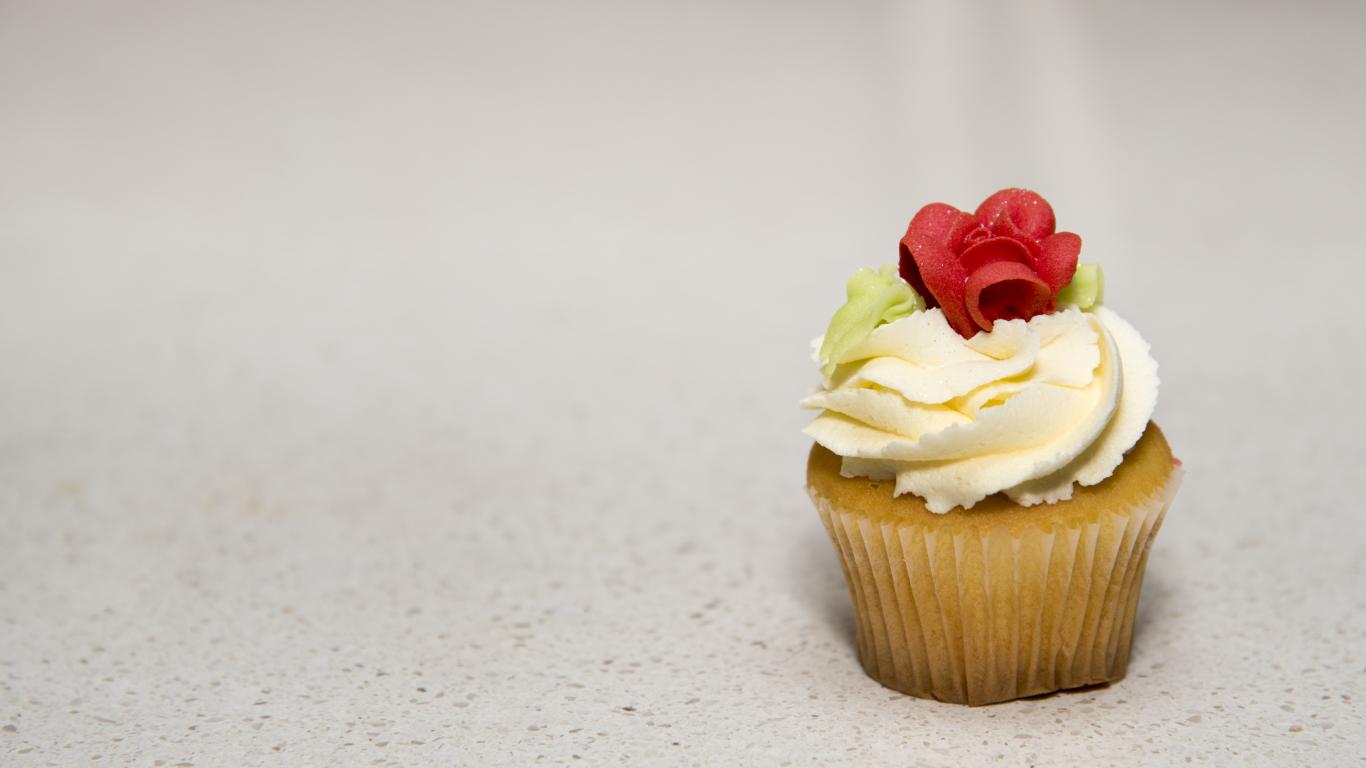 Wallpaper Cupcake with cream and sugar rose on gray background