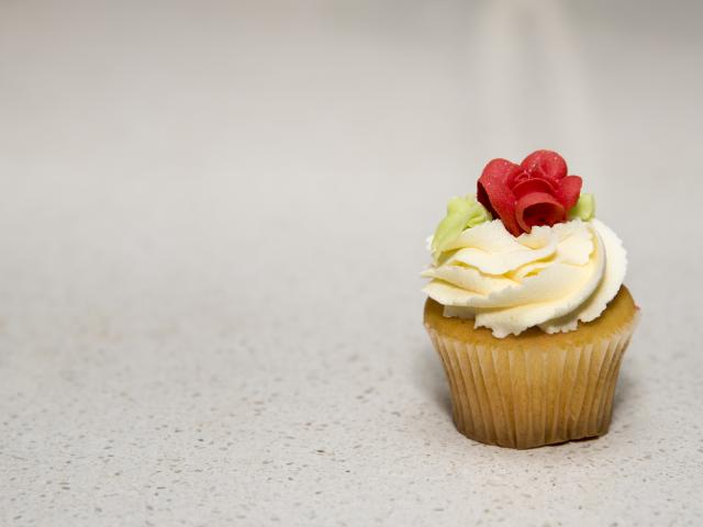 Wallpaper Cupcake with cream and sugar rose on gray background