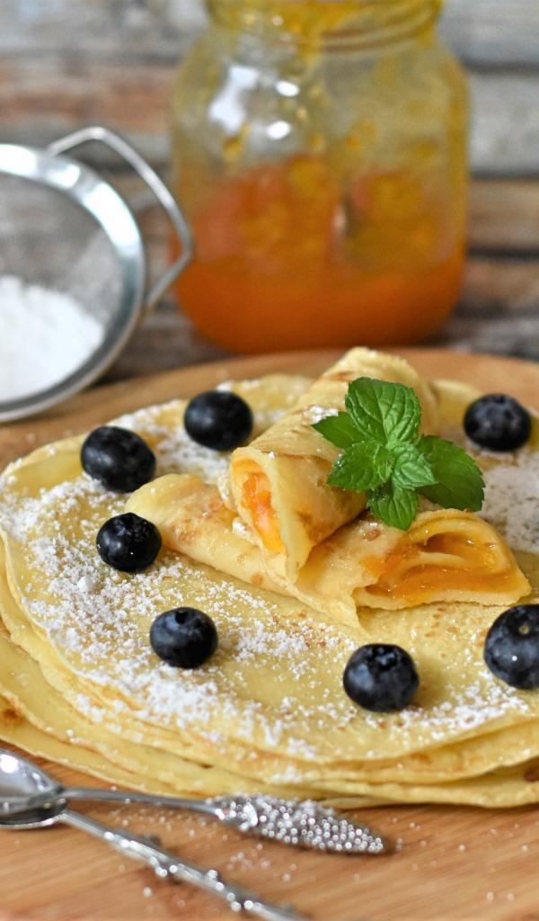 Wallpaper Thin pancakes with apricot jam, mint and blueberries