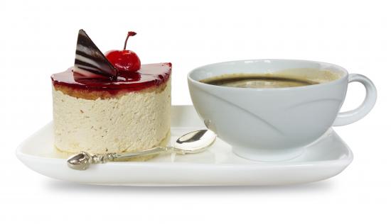Wallpaper Cake with a cup of coffee on a white background