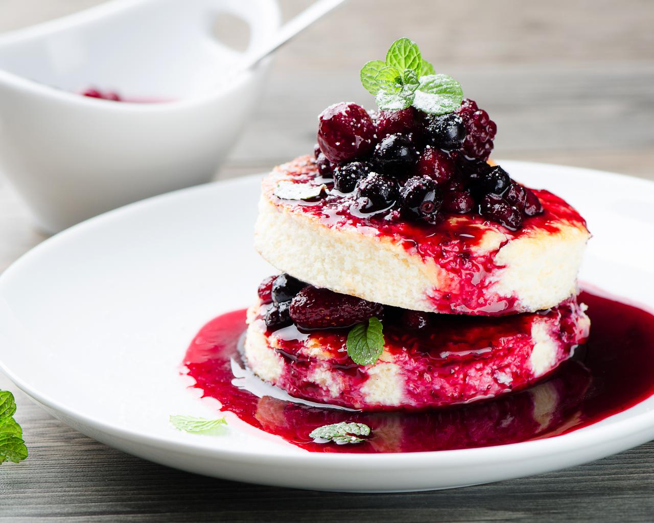 Wallpaper Appetizing cheese cakes with berries on a white plate