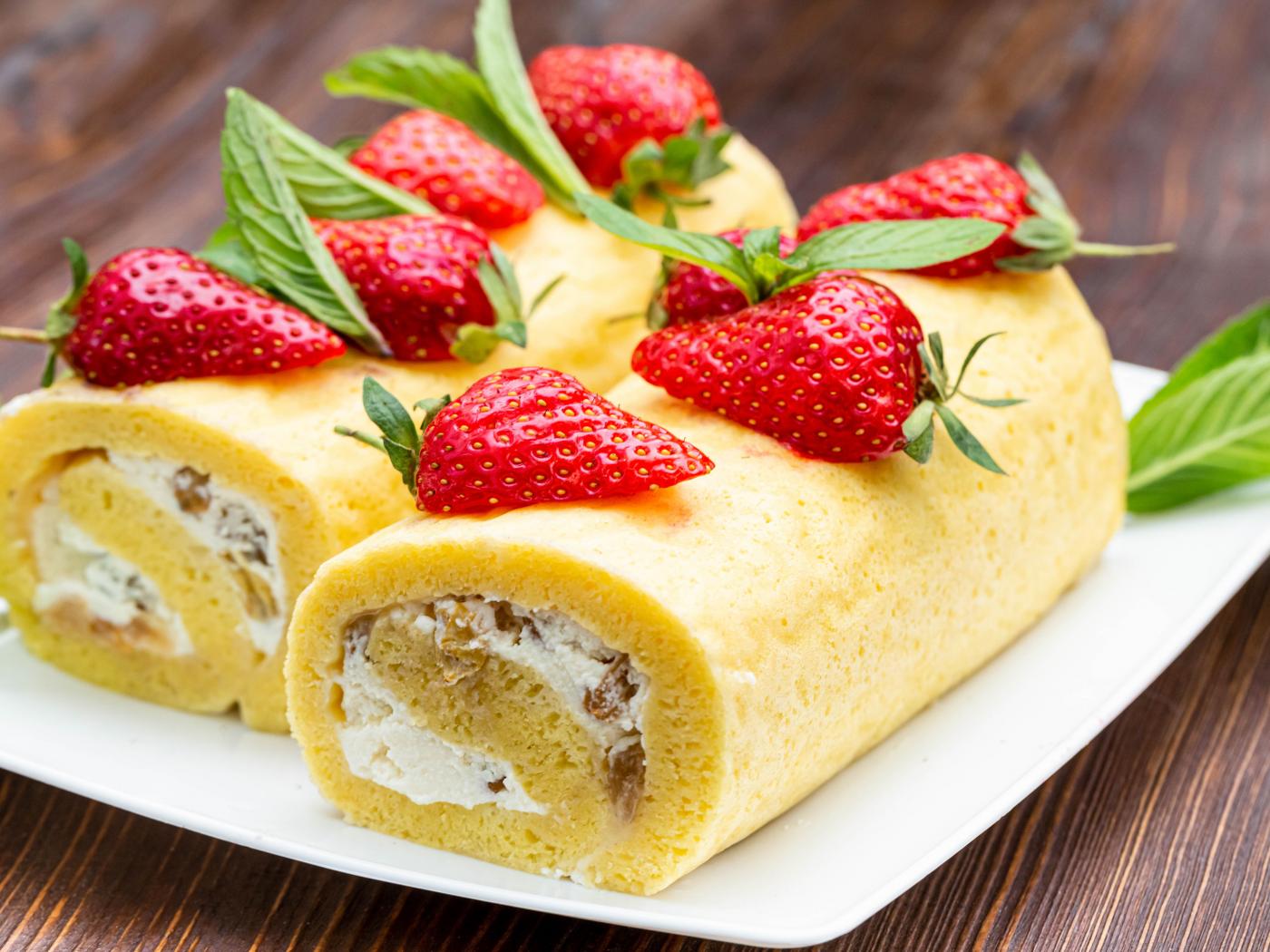 Wallpaper Appetizing sweet roll with strawberries