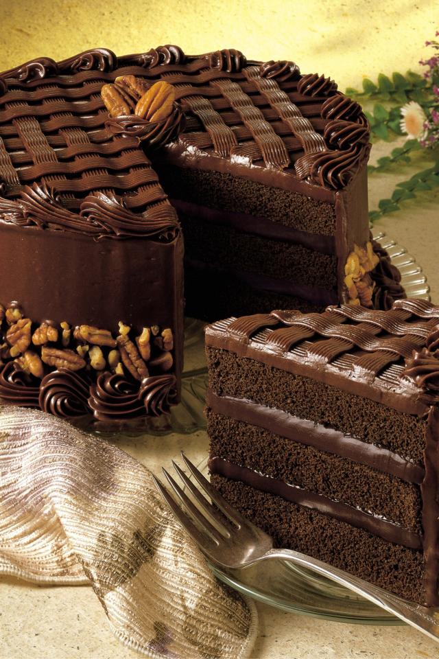 Wallpaper Cake with chocolate and nuts on a table with a spruce branch