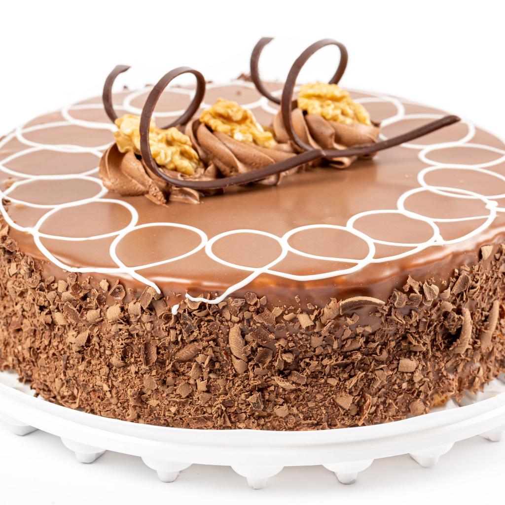 Wallpaper Appetizing cake with chocolate chips on a white plate