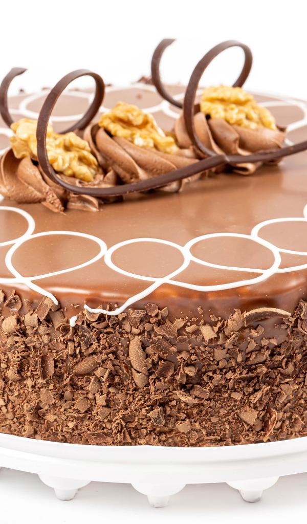 Wallpaper Appetizing cake with chocolate chips on a white plate