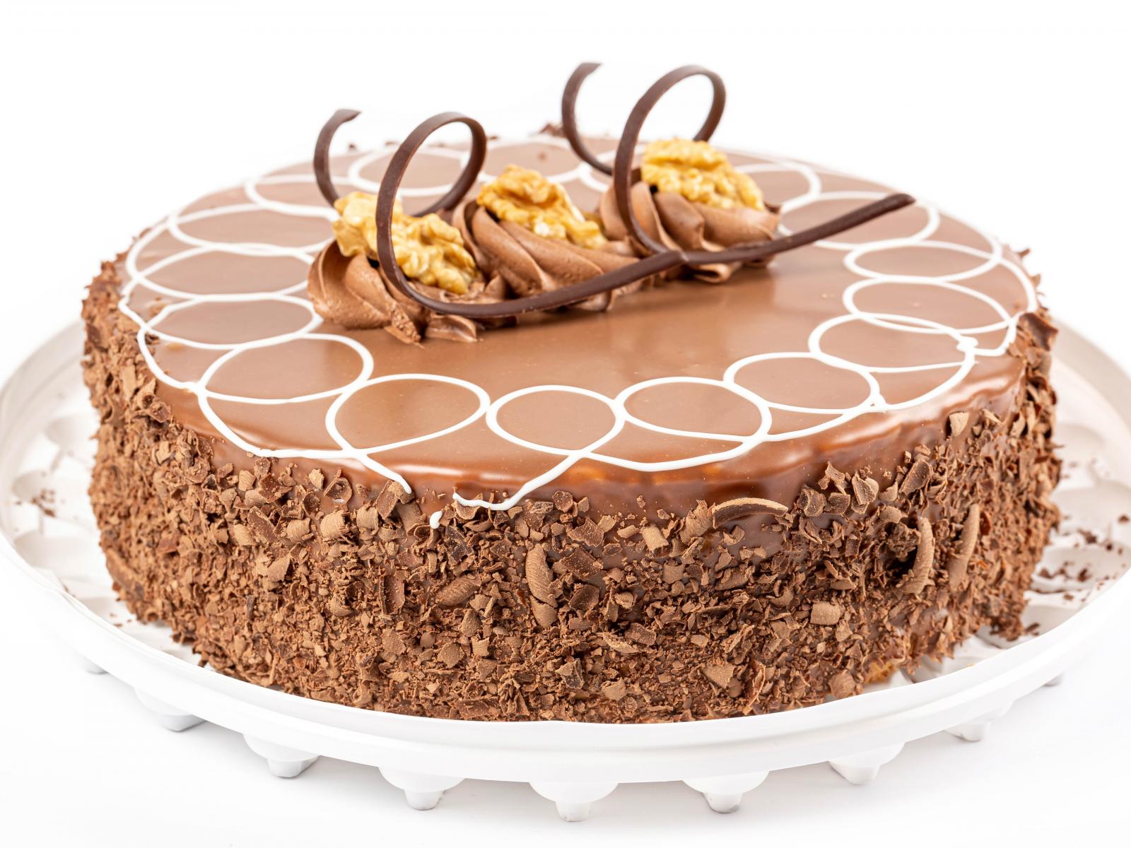 Wallpaper Appetizing cake with chocolate chips on a white plate