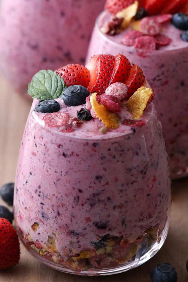 Wallpaper Berry smoothie in a glass with cereal