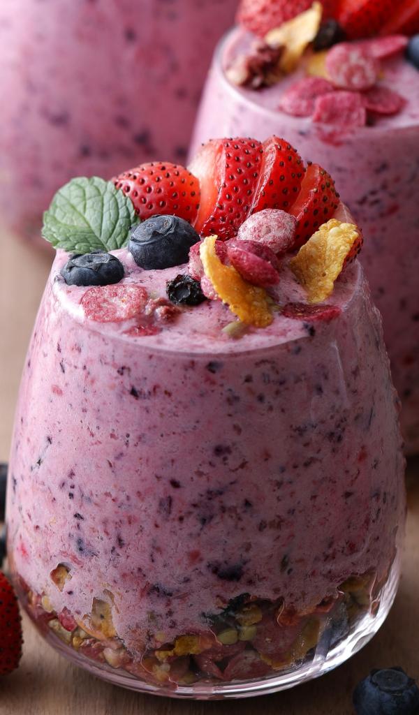 Wallpaper Berry smoothie in a glass with cereal
