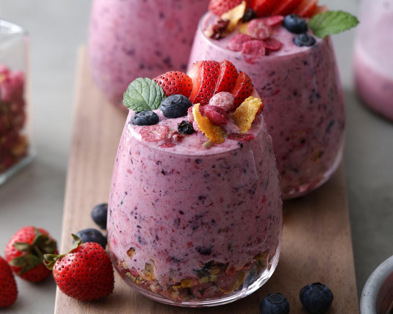 Wallpaper Berry smoothie in a glass with cereal