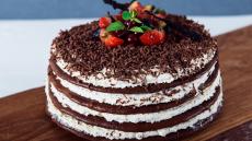 Wallpaper Big cake with meringue and chocolate decorated with cherries