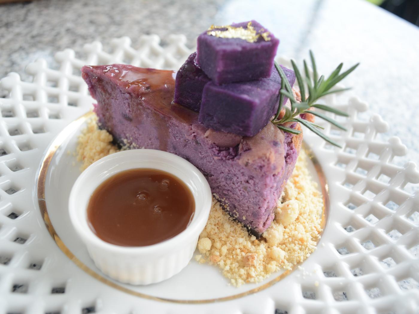 Wallpaper Berry cheesecake on a plate with caramel