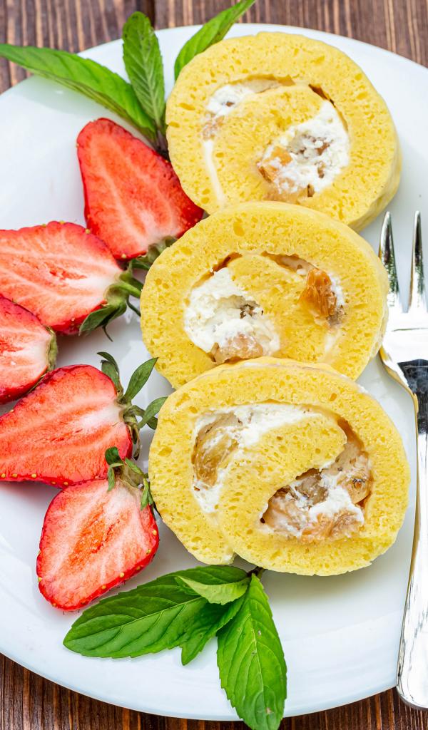 Wallpaper Sponge roll with strawberry pieces
