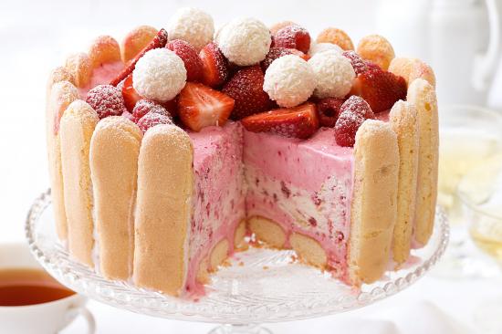 Wallpaper Cake with savoyardi cookies and strawberry mousse
