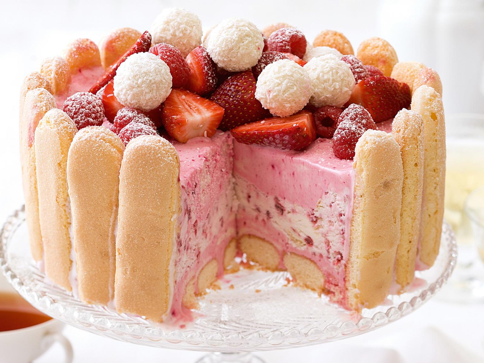 Wallpaper Cake with savoyardi cookies and strawberry mousse