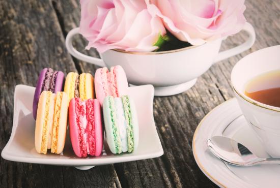 Wallpaper Dessert pasta on the table with tea and rose flowers