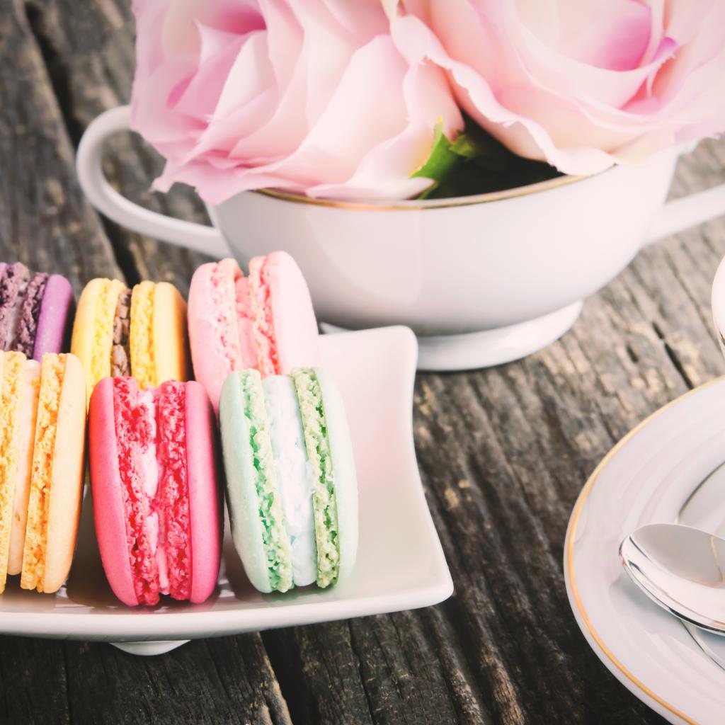 Wallpaper Dessert pasta on the table with tea and rose flowers