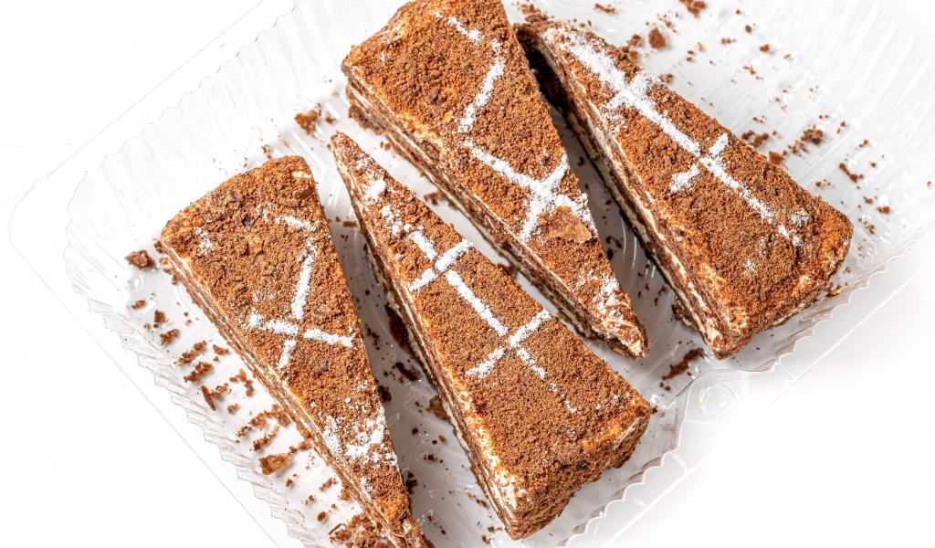 Wallpaper Pieces of appetizing honey cake on white background