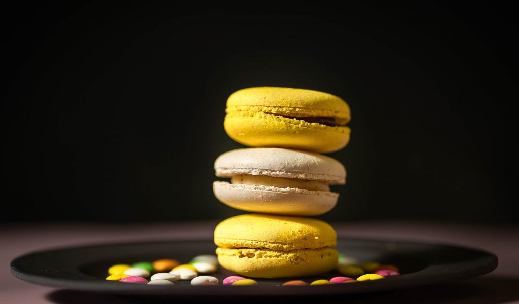 » Wallpaper Yellow macaroon dessert on a plate