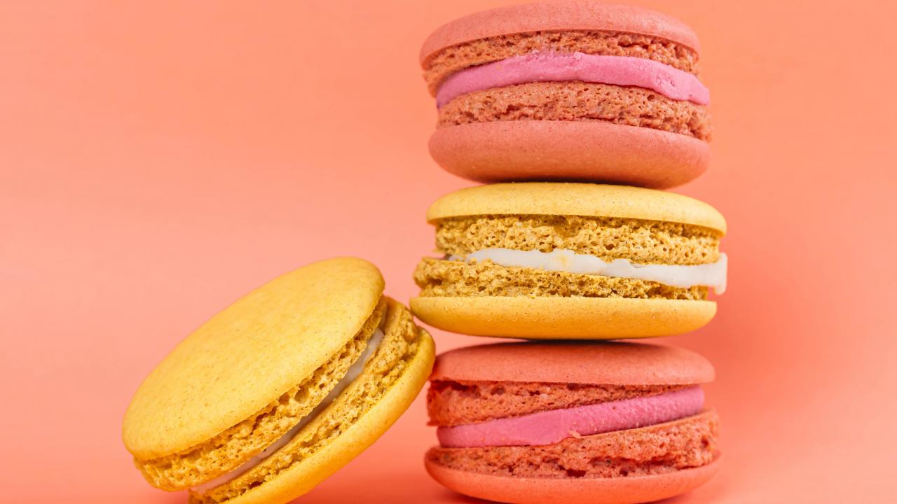 Wallpaper Multicolored pasta dessert on pink background