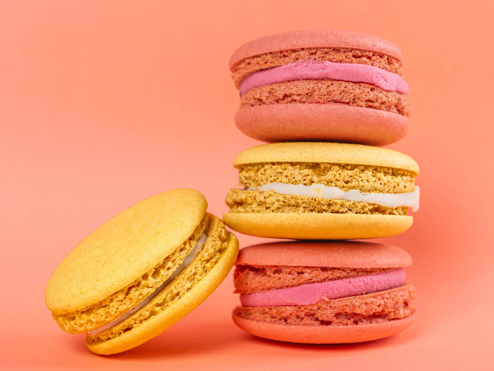 Wallpaper Multicolored pasta dessert on pink background