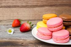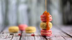 Wallpaper Creamy and chocolate macaroon dessert on the table with a plate