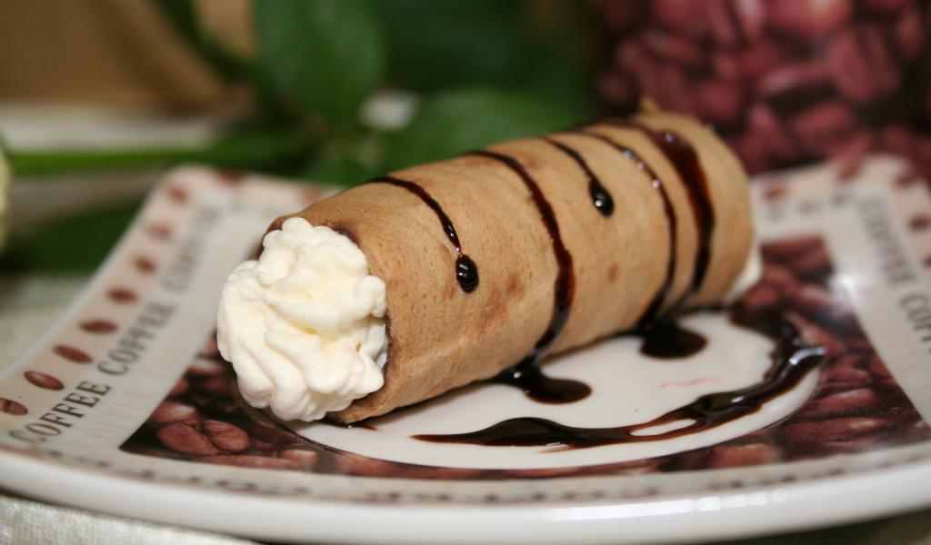 Wallpaper Sweet straw with vanilla cream on a plate