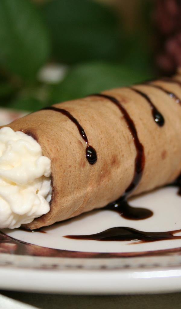 Wallpaper Sweet straw with vanilla cream on a plate