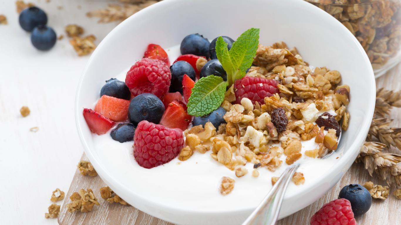 Wallpaper Oatmeal with fresh berries and yoghurt for breakfast