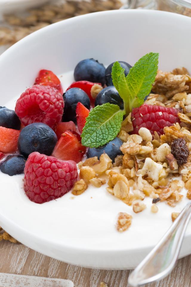 Wallpaper Oatmeal with fresh berries and yoghurt for breakfast