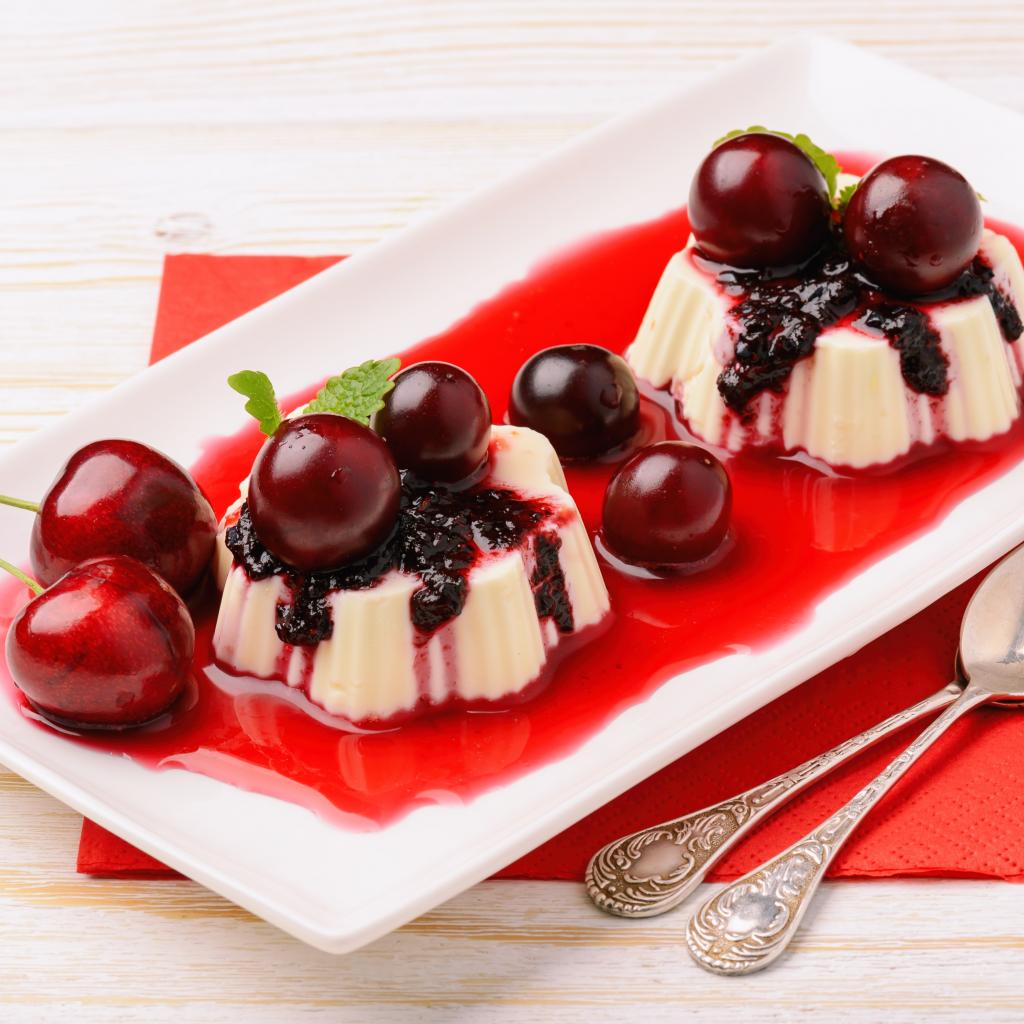 Wallpaper Milk dessert on a plate with cherries