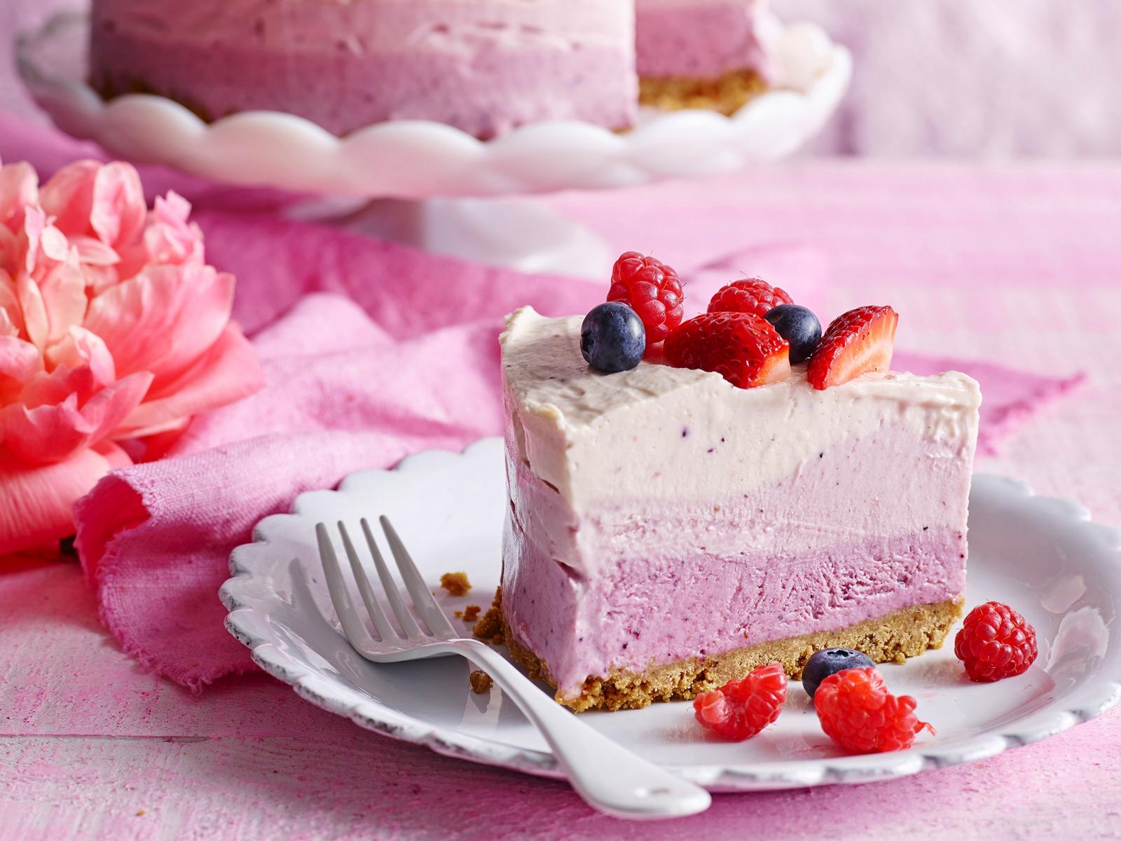 Wallpaper Piece of cake souffle with berries on the table