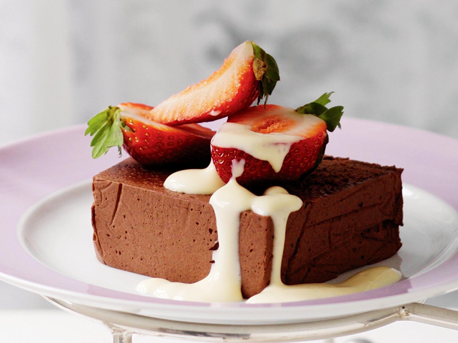 Wallpaper Chocolate soufflé with strawberries on a plate
