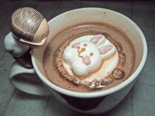 Wallpaper A cup of cocoa with marshmallow slices on a lacy napkin