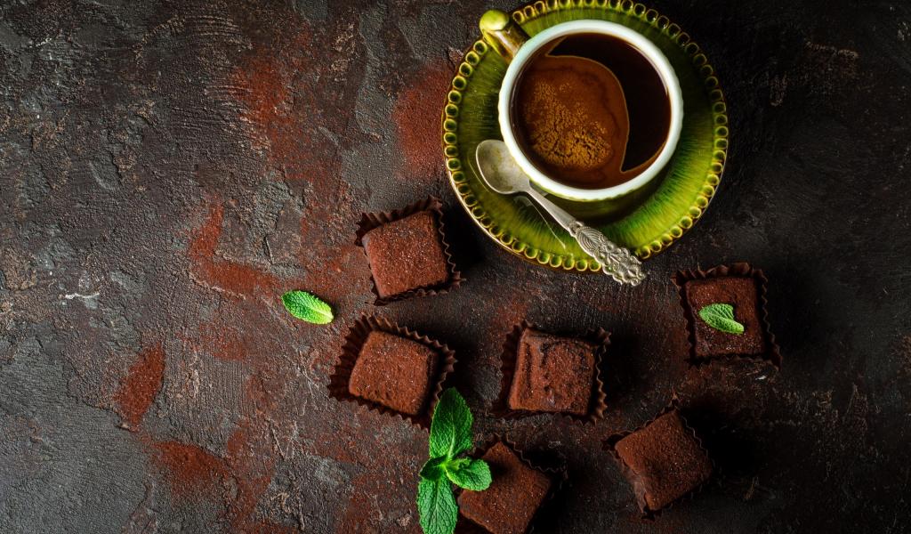 Wallpaper Fragrant coffee in a cup with chocolate sweets