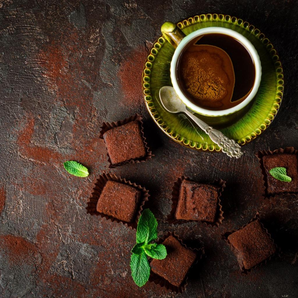 Wallpaper Fragrant coffee in a cup with chocolate sweets