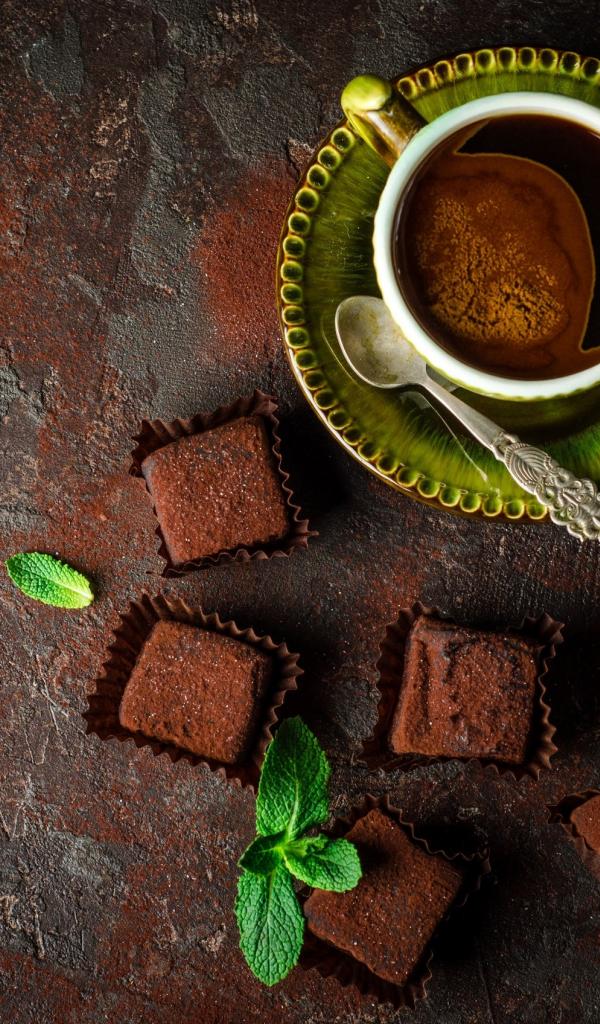 Wallpaper Fragrant coffee in a cup with chocolate sweets