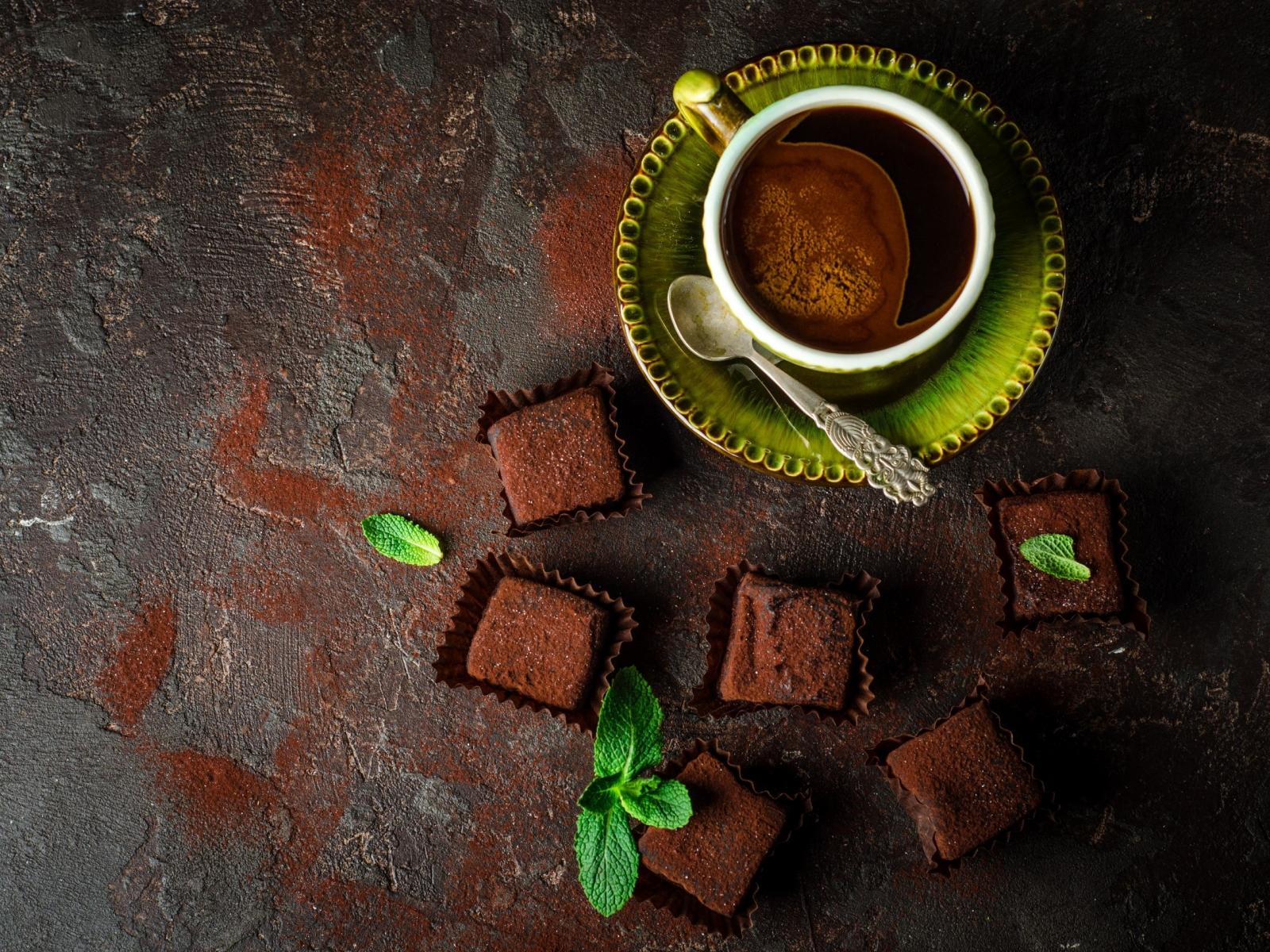 Wallpaper Fragrant coffee in a cup with chocolate sweets