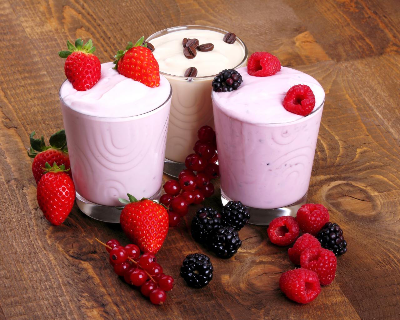 Wallpaper Milk cocktails with raspberries, strawberries and blackberries