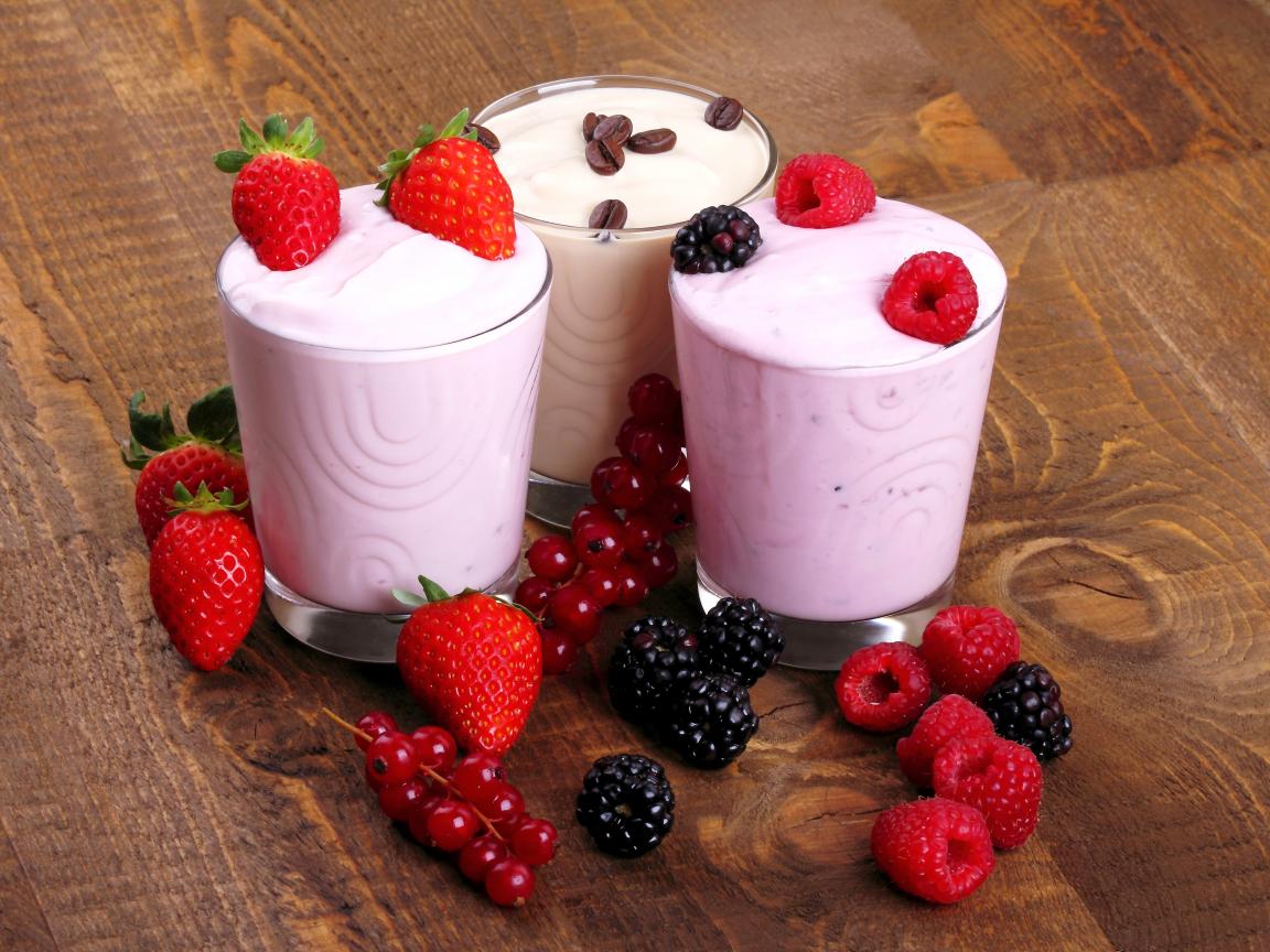 Wallpaper Milk cocktails with raspberries, strawberries and blackberries