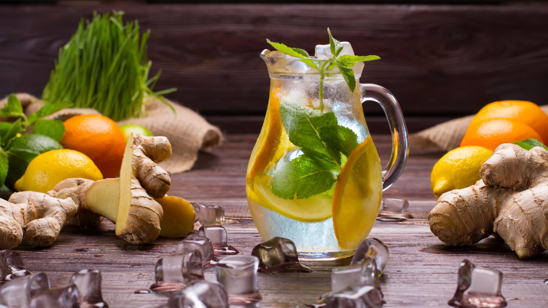 Wallpaper Cold citrus - ginger ice lemonade with ice