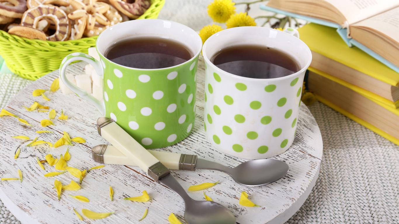 Wallpaper Two cups of fragrant tea with biscuits