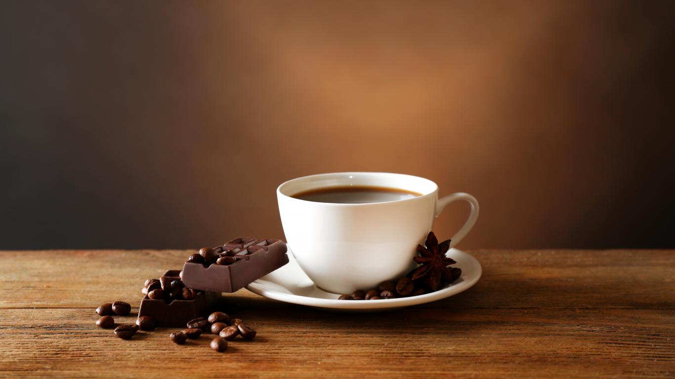 Wallpaper Coffee in a white cup with black chocolate