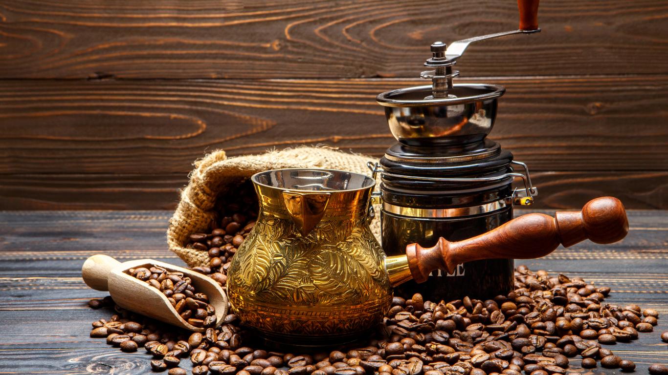 Wallpaper Turka for coffee and coffee beans on the table