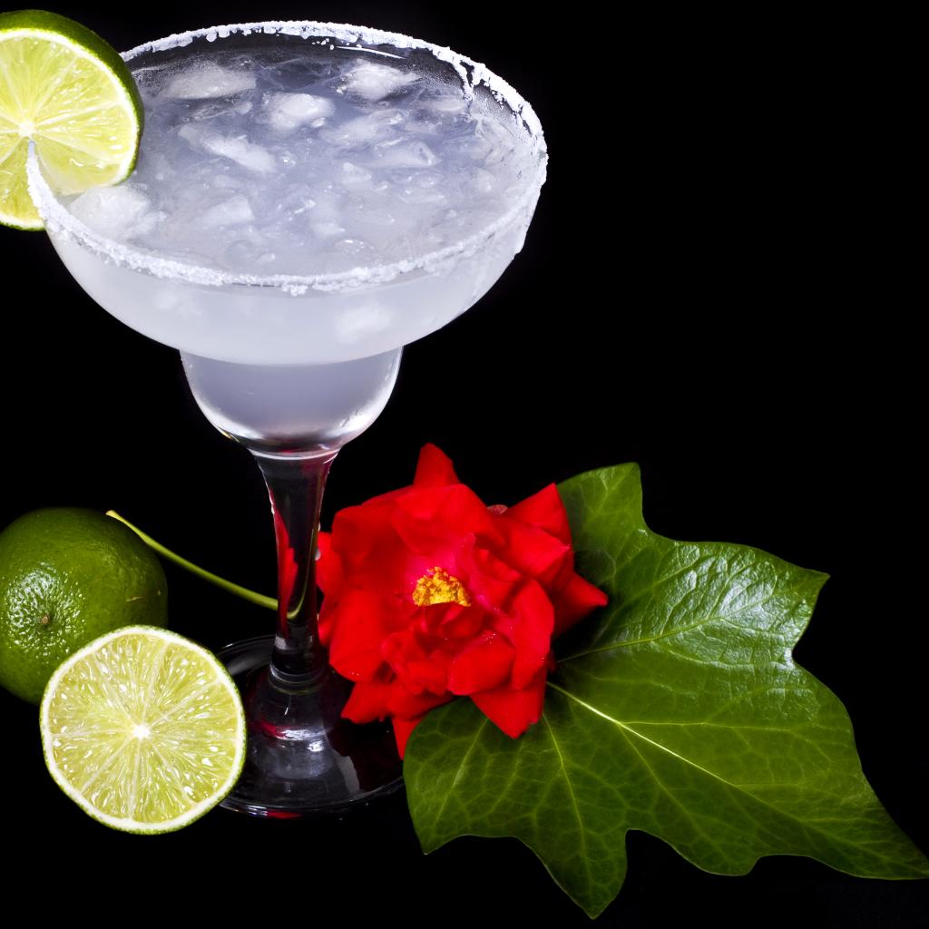 Wallpaper A glass of cocktail with ice and lime on a black background