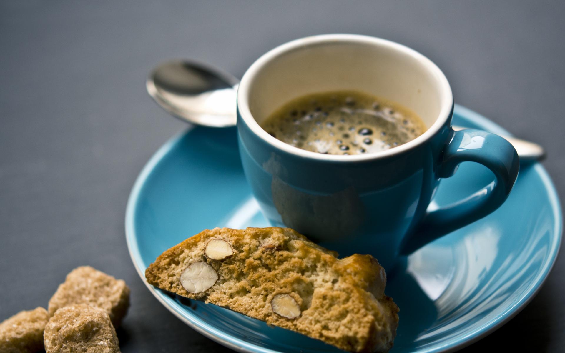 Wallpaper Blue cup with coffee and biscuits for breakfast