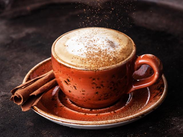 Wallpaper A cup of cappuccino with cinnamon on a saucer