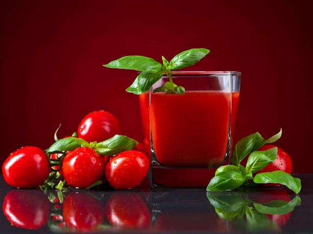 Wallpaper A glass of tomato juice with fresh tomatoes on a table